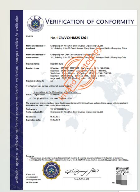 Chongqing Xinwen Chen Steel Structure Engineering Co., Ltd. Quality Control